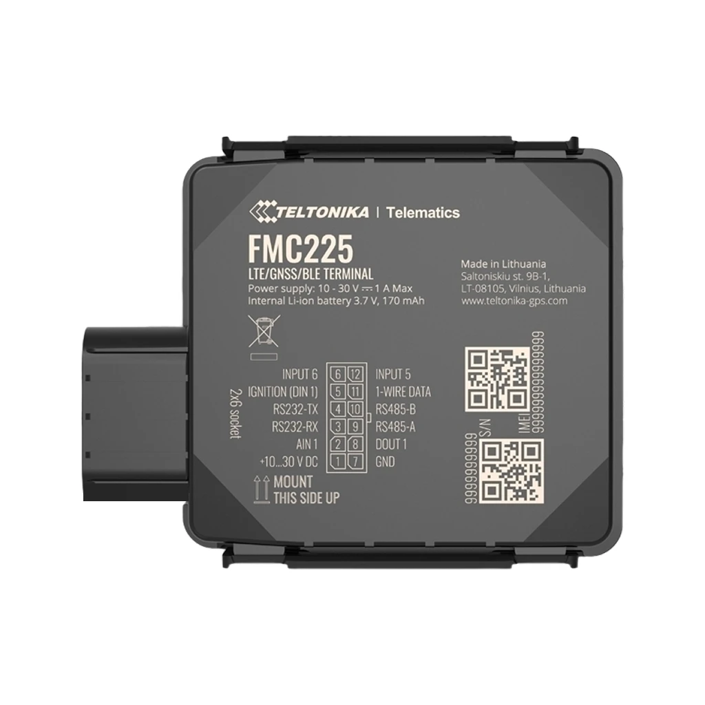 Teltonika FMC225 — это влагостойкий трекер с поддержкой 4G LTE Cat 1 и интерфейсами RS485 и RS232. Устройство поддерживает две SIM-карты, что позволяет снизить расходы на роуминг.